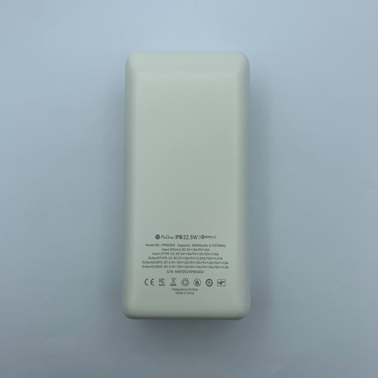 پاوربانک پرووان ProOne مدل PPB5302 با ظرفیت 30000 میلی‌آمپر و توان 22.5 وات شارژ سریع
